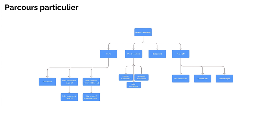 - Pour les particuliers : Création de compte, consultation des événements, inscription aux concours, modification des informations personnelles, consultation du classement des concours.